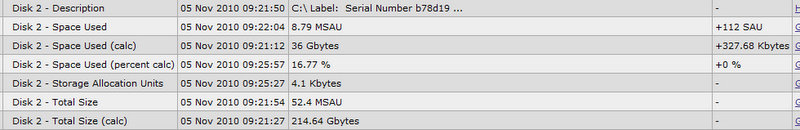 [evan@monitoring02 14:41:24 ~]$ snmpwalk -v 2c -c community 192.168.1.20 | grep -i storage HOST-RESOURCES-MIB::hrStorageIndex.1 = INTEGER: 1 HOST-RESOURCES-MIB::hrStorageIndex.2 = INTEGER: 2 HOST-RESOURCES-MIB::hrStorageIndex.3 = INTEGER: 3 HOST-RESOURCES-MIB::hrStorageIndex.4 = INTEGER: 4 HOST-RESOURCES-MIB::hrStorageIndex.5 = INTEGER: 5 HOST-RESOURCES-MIB::hrStorageIndex.6 = INTEGER: 6 HOST-RESOURCES-MIB::hrStorageType.1 = OID: HOST-RESOURCES-TYPES::hrStorageRemovableDisk HOST-RESOURCES-MIB::hrStorageType.2 = OID: HOST-RESOURCES-TYPES::hrStorageFixedDisk HOST-RESOURCES-MIB::hrStorageType.3 = OID: HOST-RESOURCES-TYPES::hrStorageCompactDisc HOST-RESOURCES-MIB::hrStorageType.4 = OID: HOST-RESOURCES-TYPES::hrStorageFixedDisk HOST-RESOURCES-MIB::hrStorageType.5 = OID: HOST-RESOURCES-TYPES::hrStorageVirtualMemory HOST-RESOURCES-MIB::hrStorageType.6 = OID: HOST-RESOURCES-TYPES::hrStorageRam HOST-RESOURCES-MIB::hrStorageDescr.1 = STRING: A:\ HOST-RESOURCES-MIB::hrStorageDescr.2 = STRING: C:\ Label: Serial Number b78d19 HOST-RESOURCES-MIB::hrStorageDescr.3 = STRING: D:\ Label:EXCH201064 Serial Number xxxxxxxx HOST-RESOURCES-MIB::hrStorageDescr.4 = STRING: E:\ Label:Exchange2010 Serial Number xxxxxxxx HOST-RESOURCES-MIB::hrStorageDescr.5 = STRING: Virtual Memory HOST-RESOURCES-MIB::hrStorageDescr.6 = STRING: Physical Memory HOST-RESOURCES-MIB::hrStorageAllocationUnits.1 = INTEGER: 0 Bytes HOST-RESOURCES-MIB::hrStorageAllocationUnits.2 = INTEGER: 4096 Bytes HOST-RESOURCES-MIB::hrStorageAllocationUnits.3 = INTEGER: 2048 Bytes HOST-RESOURCES-MIB::hrStorageAllocationUnits.4 = INTEGER: 4096 Bytes HOST-RESOURCES-MIB::hrStorageAllocationUnits.5 = INTEGER: 65536 Bytes HOST-RESOURCES-MIB::hrStorageAllocationUnits.6 = INTEGER: 65536 Bytes HOST-RESOURCES-MIB::hrStorageSize.1 = INTEGER: 0 HOST-RESOURCES-MIB::hrStorageSize.2 = INTEGER: 10459647 HOST-RESOURCES-MIB::hrStorageSize.3 = INTEGER: 546570 HOST-RESOURCES-MIB::hrStorageSize.4 = INTEGER: 104824319 HOST-RESOURCES-MIB::hrStorageSize.5 = INTEGER: 393172 HOST-RESOURCES-MIB::hrStorageSize.6 = INTEGER: 196600 HOST-RESOURCES-MIB::hrStorageUsed.1 = INTEGER: 0 HOST-RESOURCES-MIB::hrStorageUsed.2 = INTEGER: 5885720 HOST-RESOURCES-MIB::hrStorageUsed.3 = INTEGER: 546570 HOST-RESOURCES-MIB::hrStorageUsed.4 = INTEGER: 44650892 HOST-RESOURCES-MIB::hrStorageUsed.5 = INTEGER: 166057 HOST-RESOURCES-MIB::hrStorageUsed.6 = INTEGER: 152902