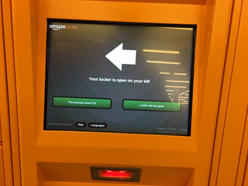 A locker door opened up, but it was way too small for my package. I clicked “the package doesn’t fit” on the screen.