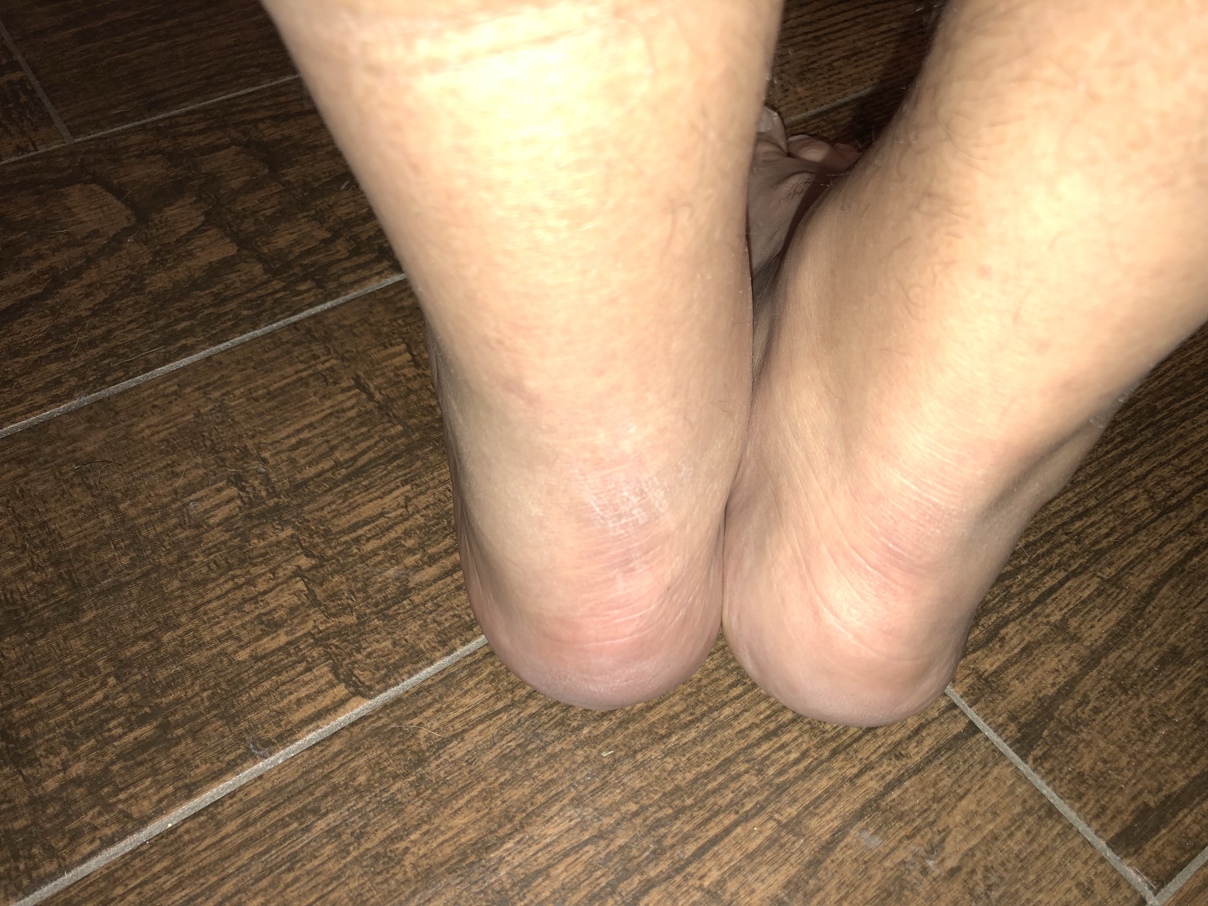 I also took a picture of the back of my feet and the difference between the two is already pretty striking. My Achilles’ tendon is obvious on my right foot, while my left just looks like a lump of flab.