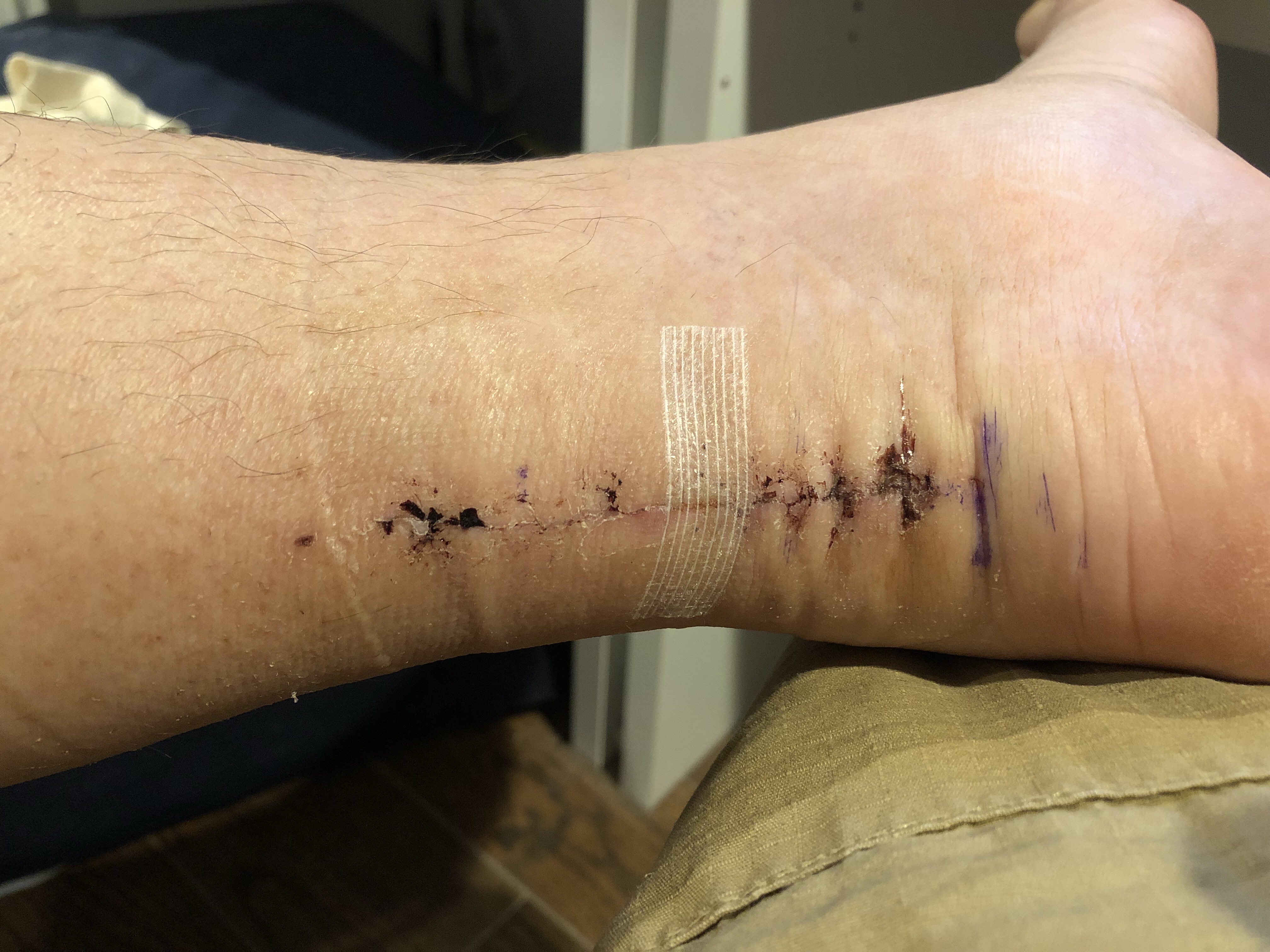 Had my second post-op followup today (August 10th, 2018), 25 days after having Achilles’ tendon rupture repair surgery. The doctor took the tape off the incision, said it was all closed up but there was still a part that was “soft” so he put a strip of tape back on.