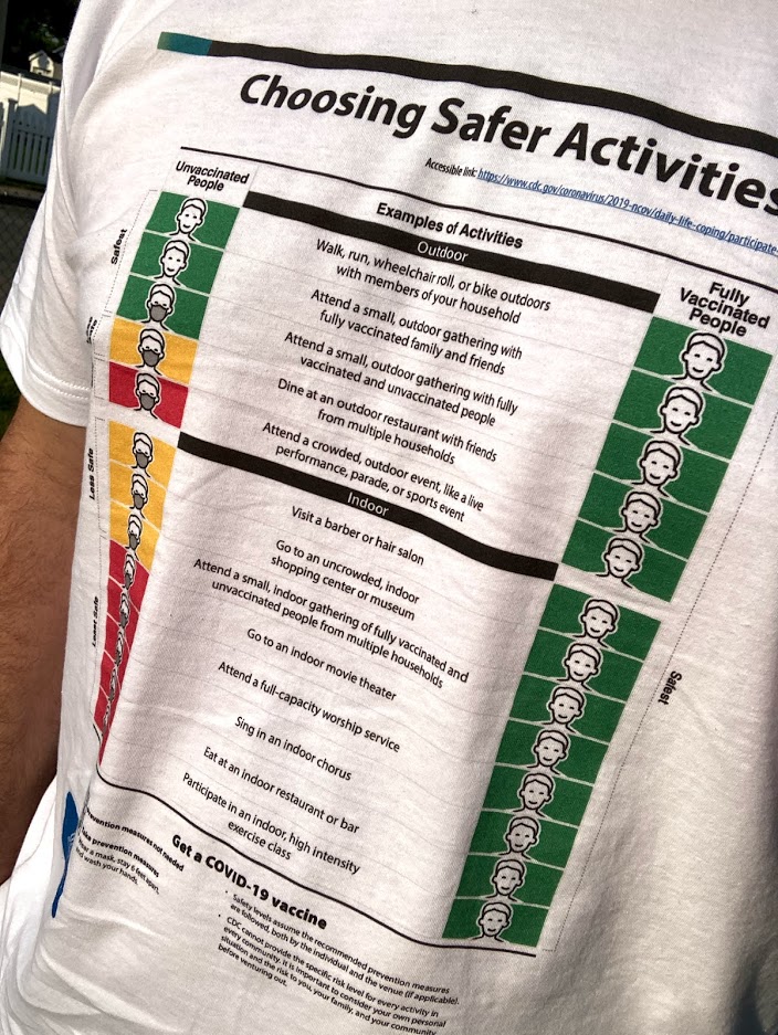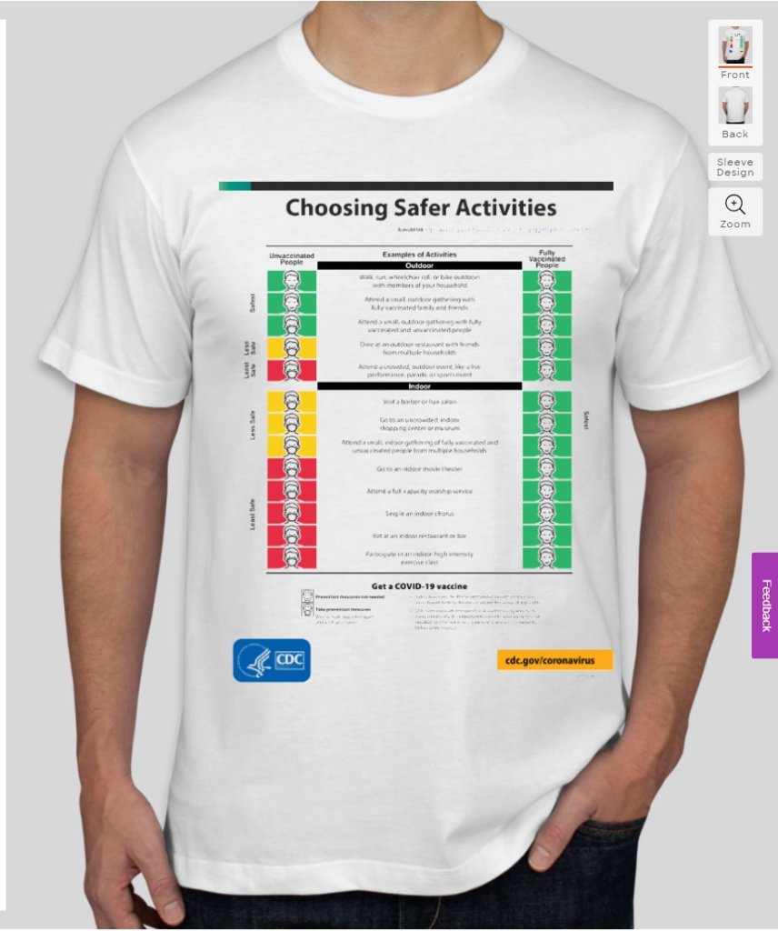 Last week the CDC came out with their new guidance that vaccinated people basically never have to wear a mask. To celebrate I made this t-shirt with their infographic, on CustomInk.